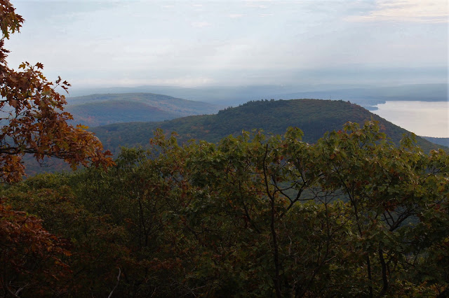 We dropped down off the summit to about 2400 feet on the southeast ridge and found a gorgeous ledge view over the Ashokan Reservoir. Tonshi Mountain is the mountain just north of the reservoir, sitting at an elevation of just over 2000 feet.