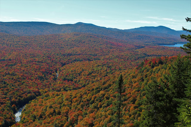 FINALLY!! Finally a nice fall day in the forecast to do some exploring in the central Adirondacks. Headed towards Indian Lake on a crisp early October morning to do a pair of small bushwhack hikes with my buddy Jim. Had to pull off the road on my way to soak in the incredible morning view over Adirondack Lake from Byron Park just east of the hamlet of Indian Lake.