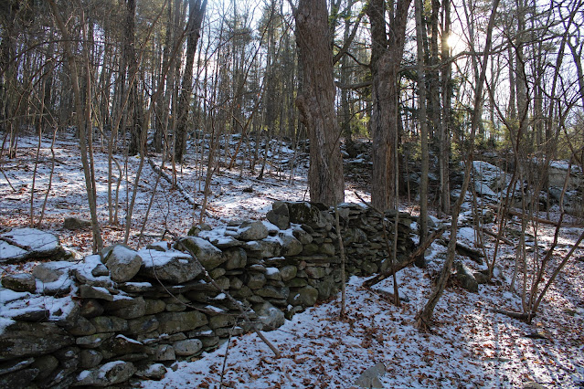 Headed down to the beautiful Litchfield Hills in the NW corner of Connecticut this afternoon to do a little exploring along the north ridge of Mine Mountain. Mine Mountain is actually a long north-south ridge with multiple summit knobs sitting high above the east banks of the Housatonic River. To access the mountain, I utilized the Trinity Riverside Trail, which can be found at the very end of Lower River Road, and begins on Trinity Retreat Center Property before entering the Housatonic State Forest.(Elevation at the Trailhead is just a touch over 500 feet). With the sun shining bright and the trail well used I threw my spikes on and headed south, closely hugging the Housatonic.
