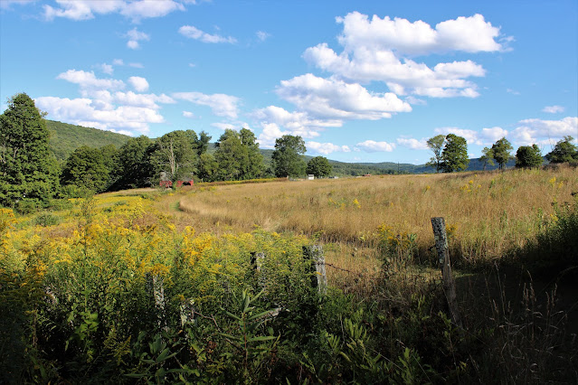 Back from a nice vacation getaway, I headed into the southern Berkshires this afternoon to do a little hiking in bucolic Tyringham. Conditions were nearly perfect as I parked at the Trustees of Reservations Tyringham Cobble Trailhead along Jerusalem Road(Elevation 995 feet) and headed through the open meadows on the mowed Cobble Loop Trail.